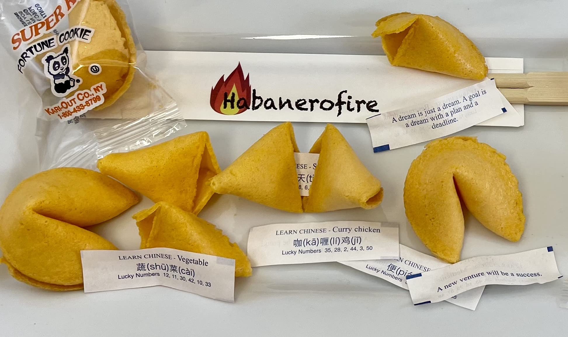 Amazon Com Habanerofire Fortune Cookie 50 Individually Wrapped Cookies With Fun Fortunes Lucky Numbers Chinese Language Plus One Set Habanerofire Chopsticks Grocery Gourmet Food